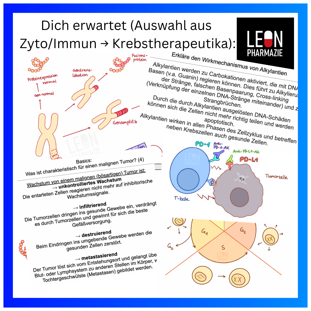 Mit insgesamt 66 Anki-Karteikarten, begleitet von 6 anschaulichen Abbildungen, erhältst du einen tiefen Einblick in die Krebstherapie. Dieses Thema deckt verschiedene Aspekte ab, von den klassischen Zytostatika bis hin zu zielgerichteten Therapieformen und der spezifischen Leukämietherapie. Jedes Unterthema wird ausführlich erklärt, sodass du nach dem Lernen dieser Karteikarten die Krebstherapeutika auch wirklich verstehst anstatt lediglich auswendig zu lernen.